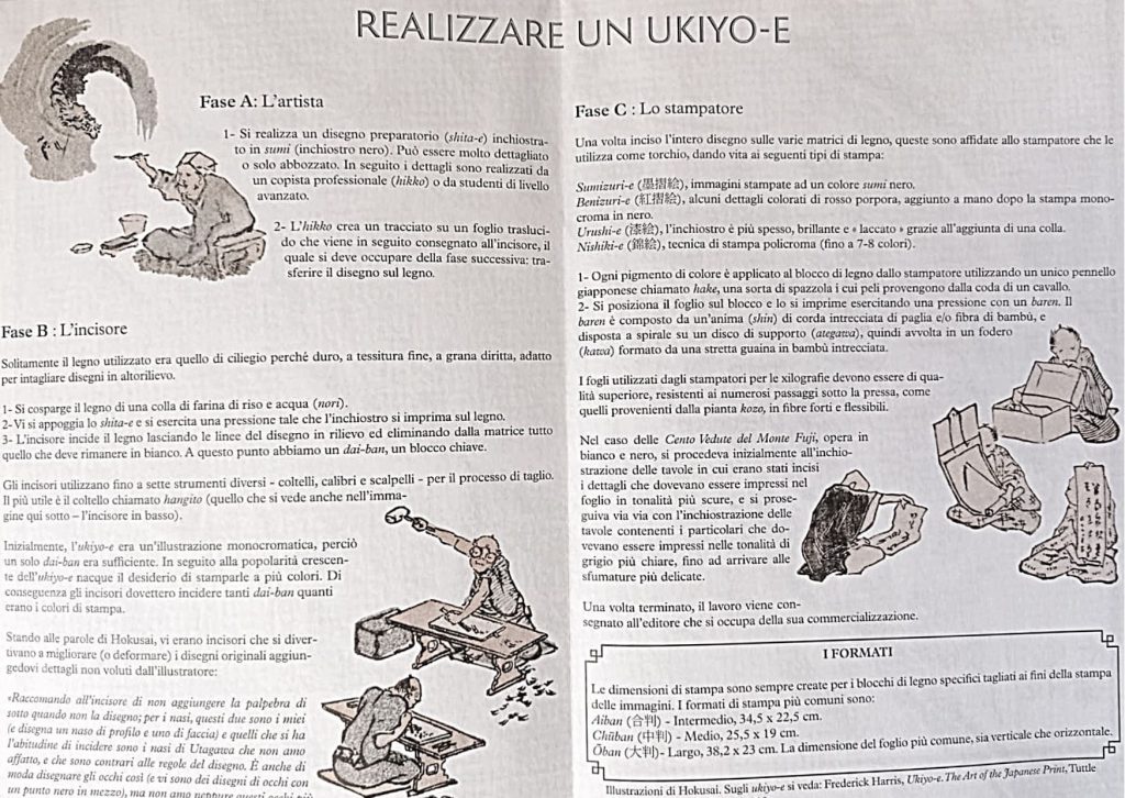 Dalla realizzazione dello stampo sul legno alla stampa sul foglio, imparerete la tecnica ancestrale di come si realizza uno Ukyo-e.